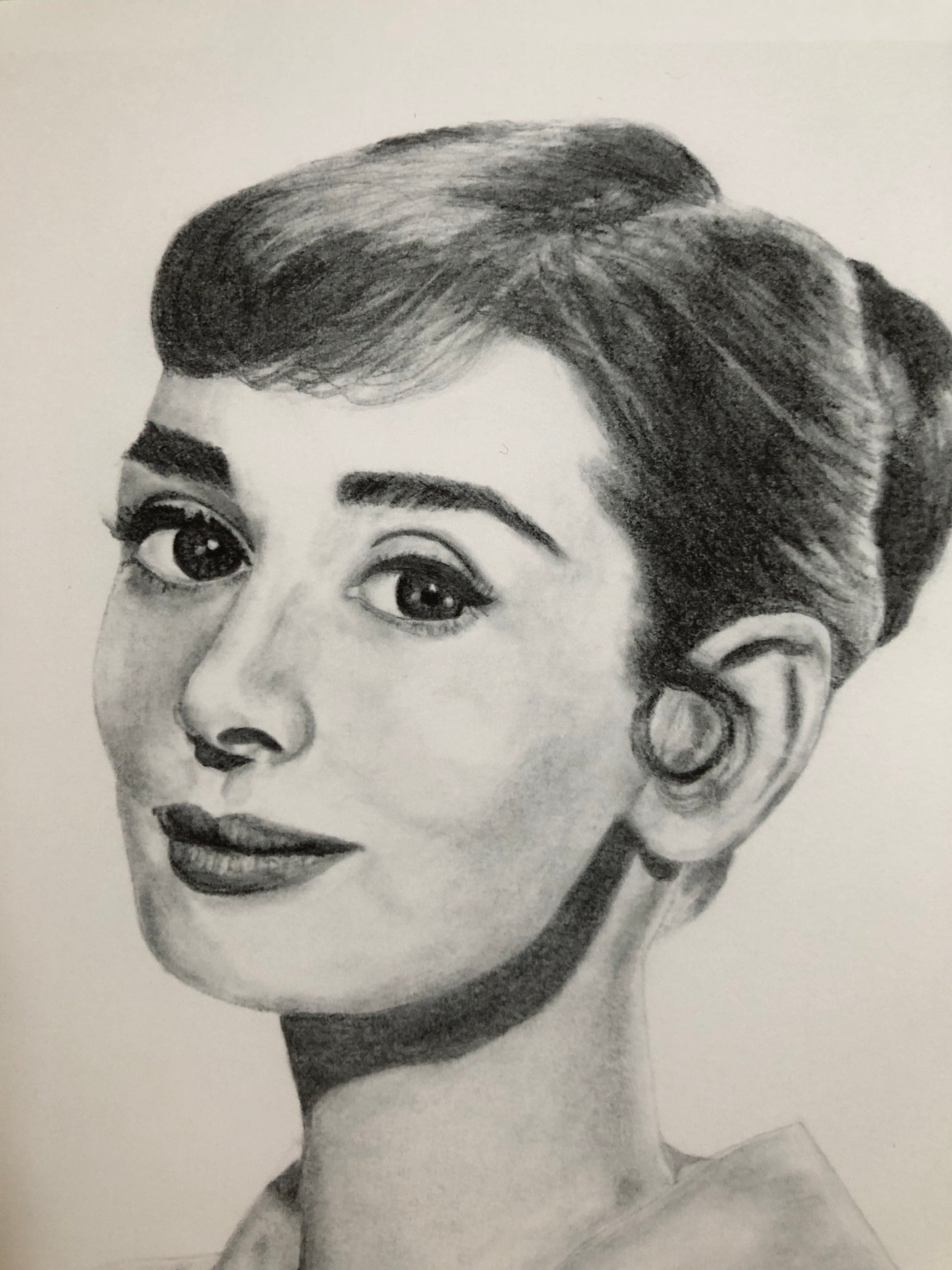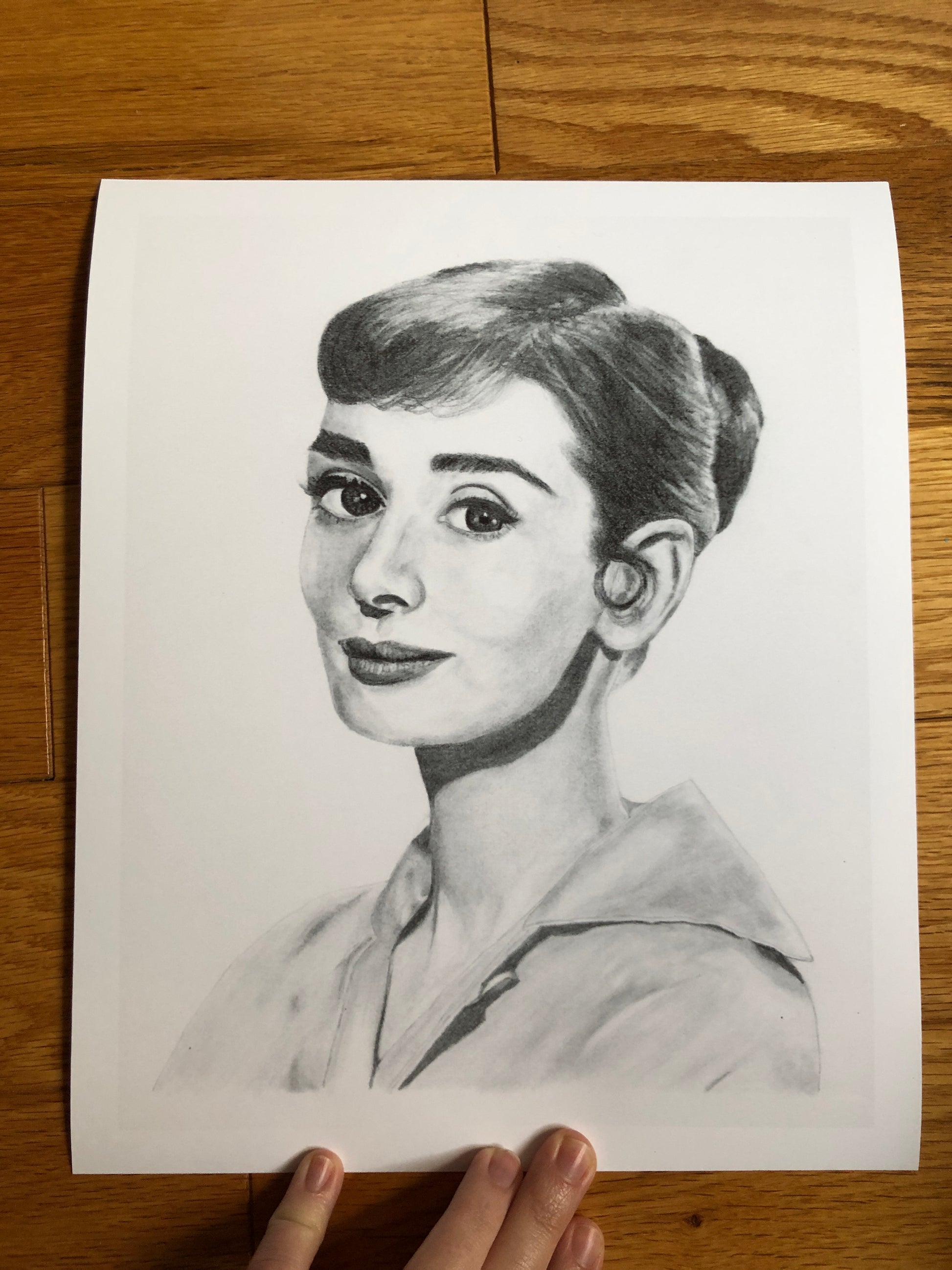 This 8"x10" portrait of actress Audrey Hepburn is printed on archival matte paper, with a 1/2" border.
