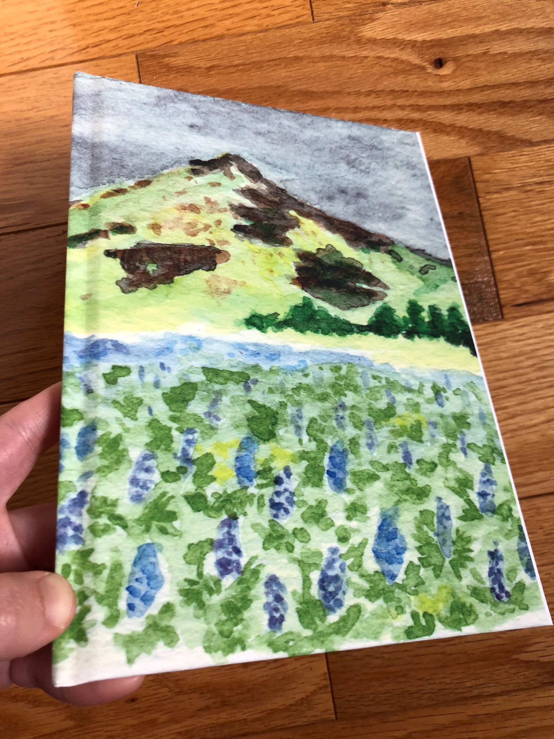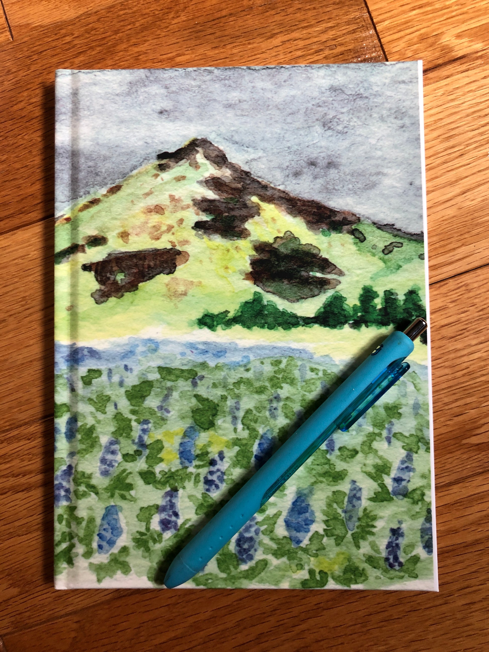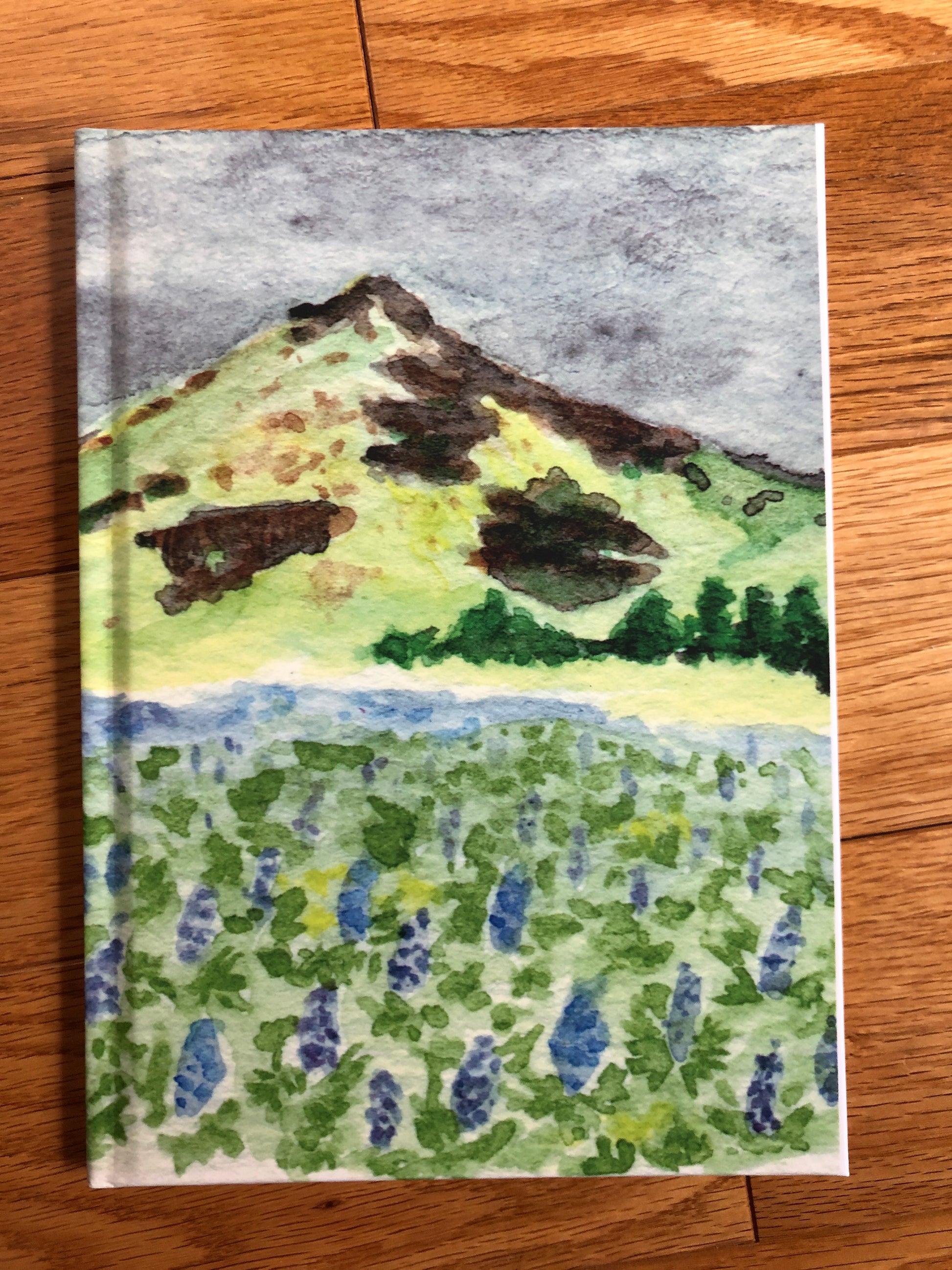 This A5 journal features an original watercolor painting printed on the cover, and is perfect for all your journaling, writing, or sketching needs. It is hardbound, with 100 cream-colored pages, and a matte cover.