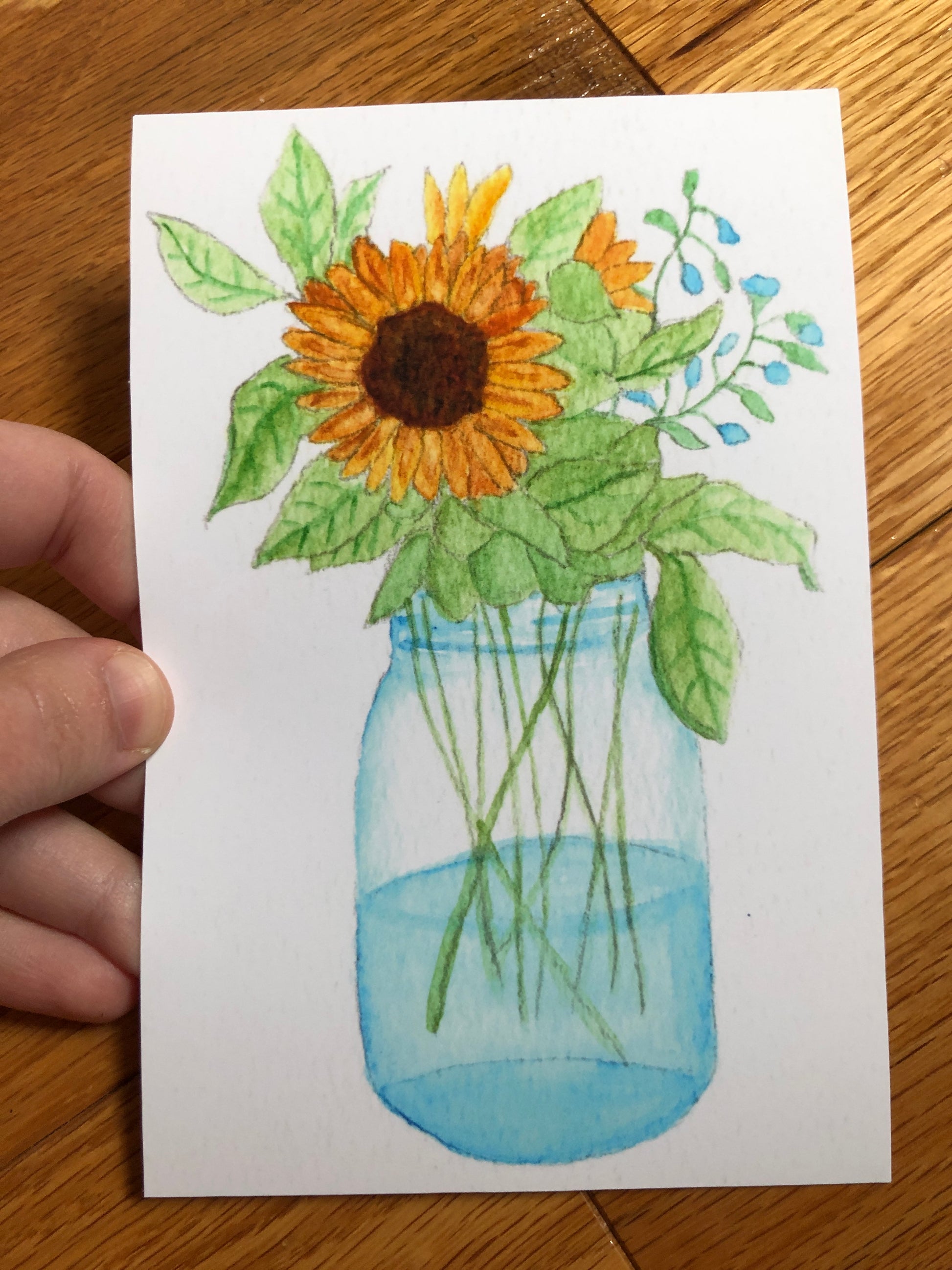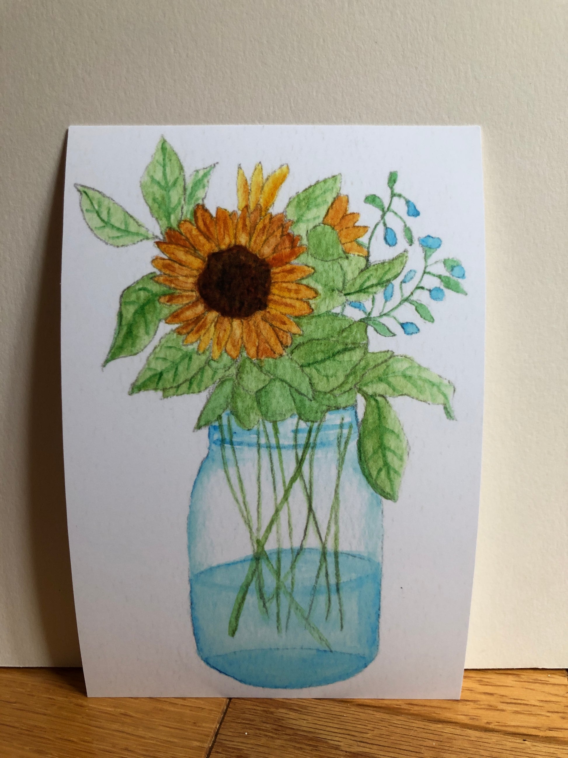 Sunflower Jar Watercolor Print - Only ONE print of this paper type -