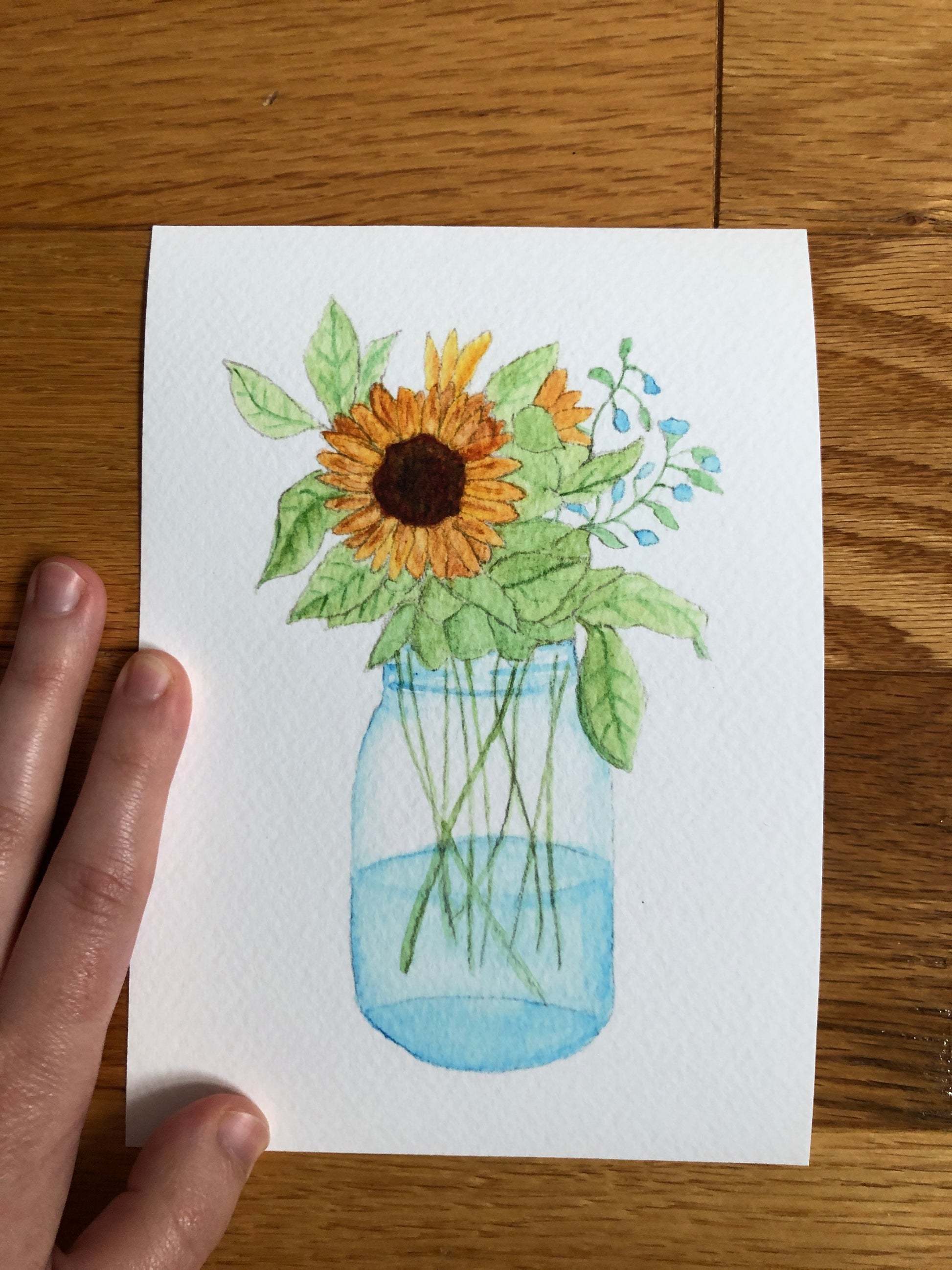 This cheerful watercolor painting is printed on 4" x 6" watercolor paper with a 1/2" border.