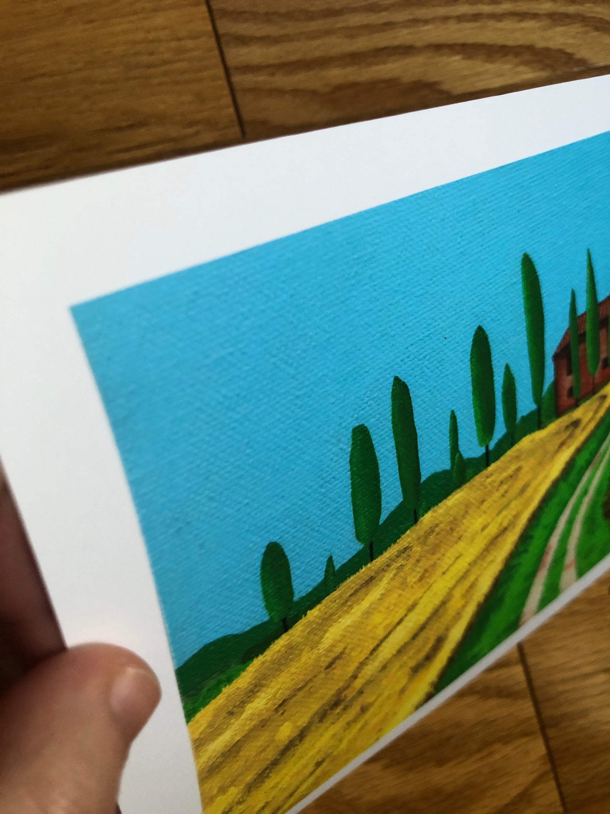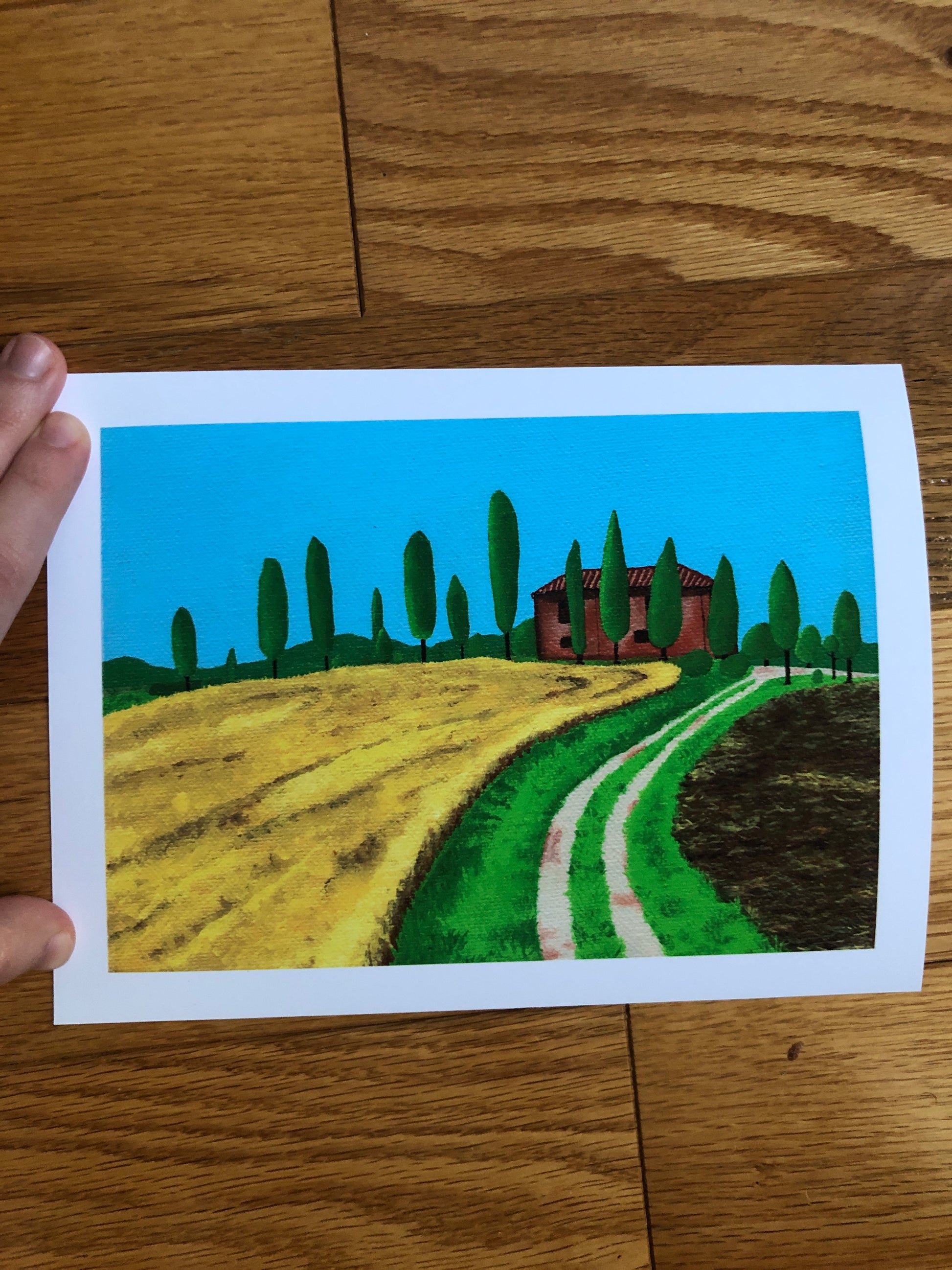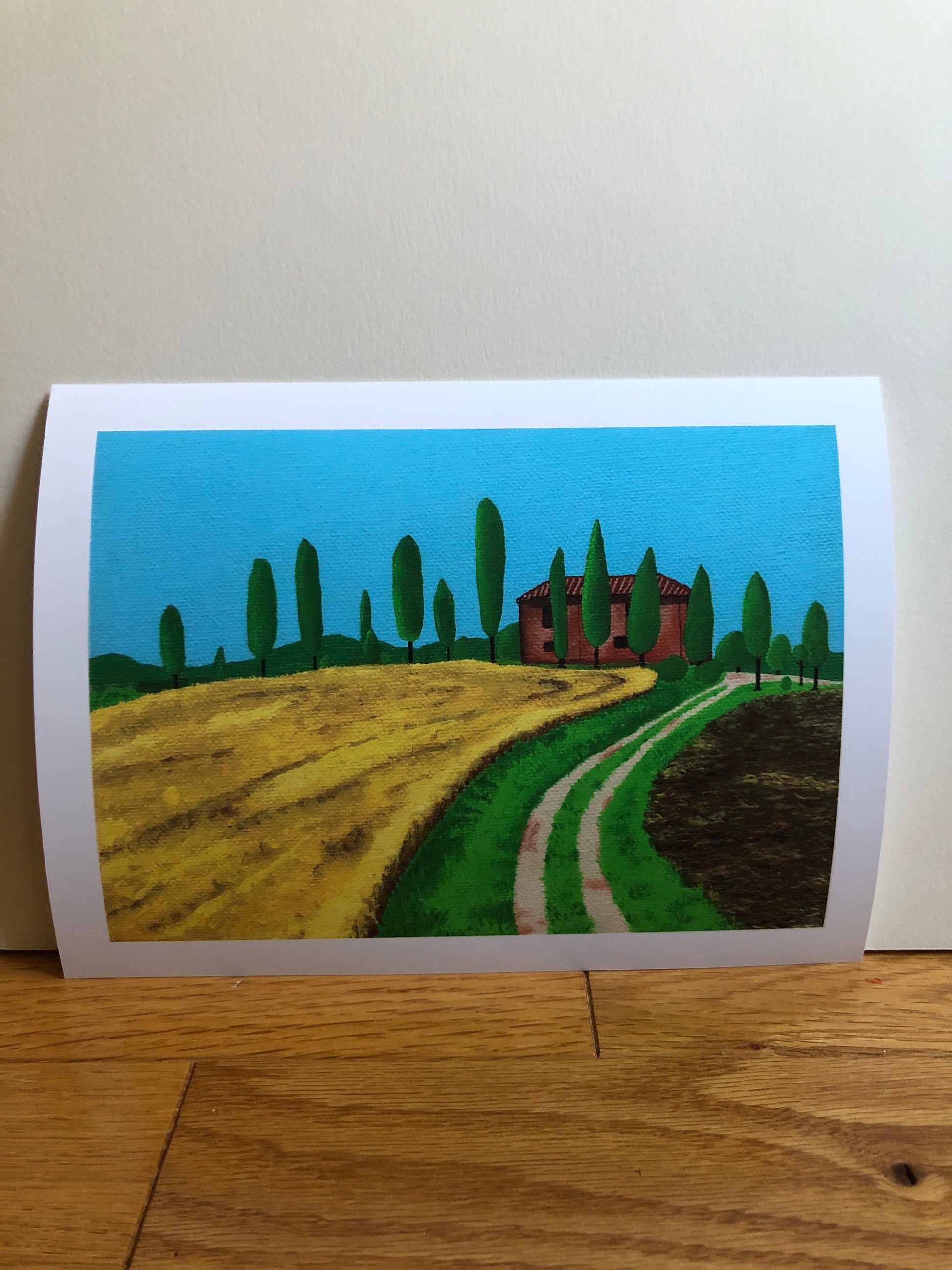 This print features a vibrant Tuscan landscape, printed on 7"x5" archival matte paper, with a 1/2" border. Perfect for Italian-themed rooms.
